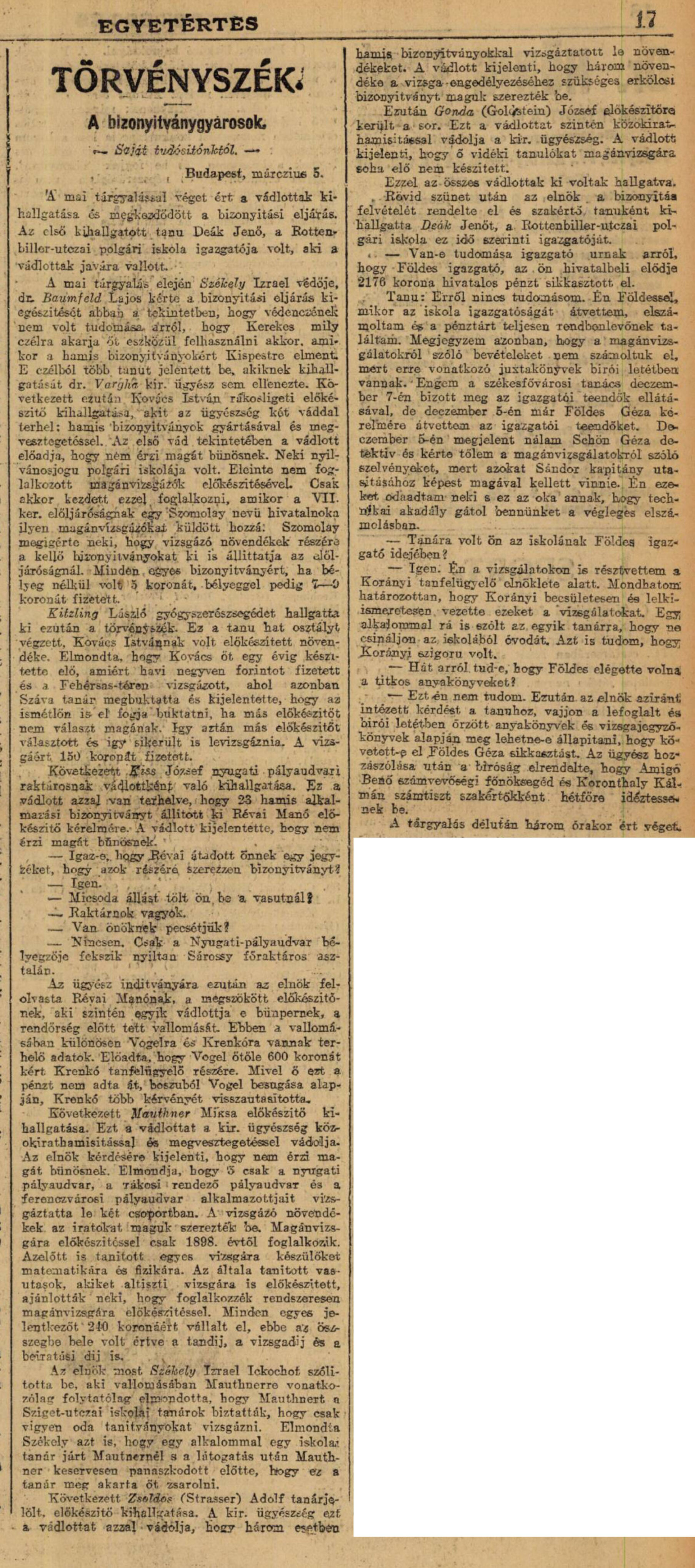 EGYETÉRTÉS Vissza a SAJTÓHÍREK lapra 1910 Egyetértés 1910_03_04_7 oldal TIFUSZ járvány Forrás: Egyetértés, 1910. március 06. Kovács iskolai bizonyítvány hamisítás. 1924 Szabó Endre halála. 1924. február 5. Szabóné Nogáll Janka halála. 1924. november 8. 1925 Vasúti baleset. 1925. április 5. 1940 1940_01_27_ 3 oldal baltás gyilkosság 1940_ 02_28_ 4 oldal demeczky gyilkosság Vissza a SAJTÓHÍREK lapra