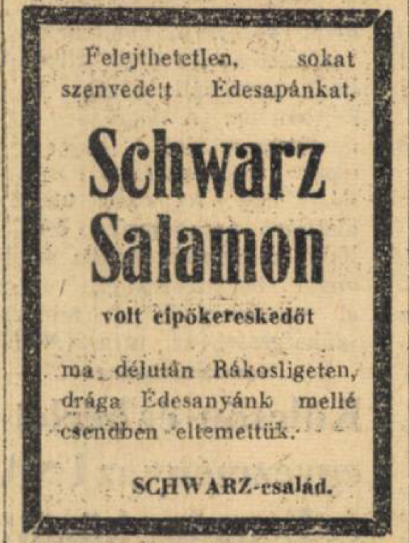 Esti Kurir, 1942. április (20. évfolyam, 74-97. szám)1942-04-07 77. szám SCHWARZ SALAMON temetés