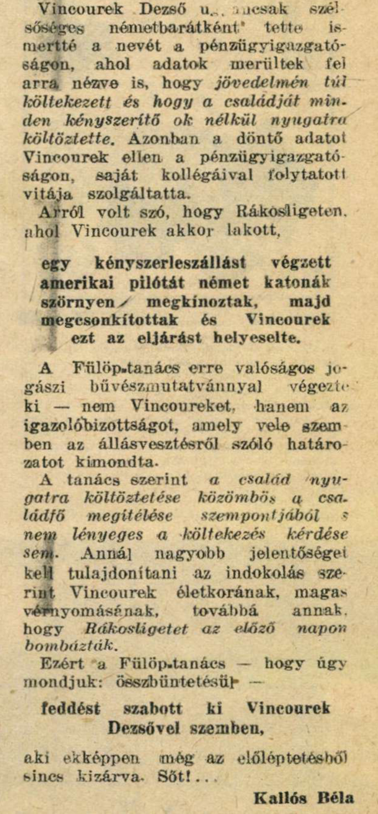 Vincourek Dezső az Igyzoló Bizottság előtt. 1945