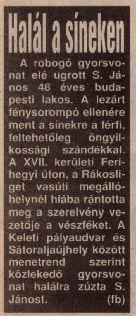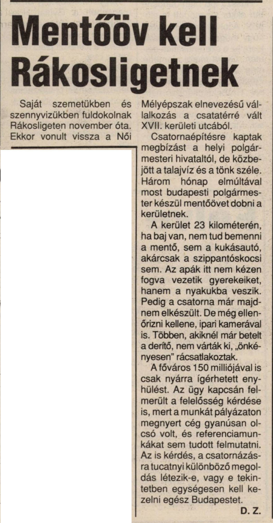 MAI NAP 1994 1994. február 15. Csatornázás. 1997 1997. szeptember 7. Vasúti baleset Rákosligeten. VISSZA a SAJTÓ 1950 – lapra