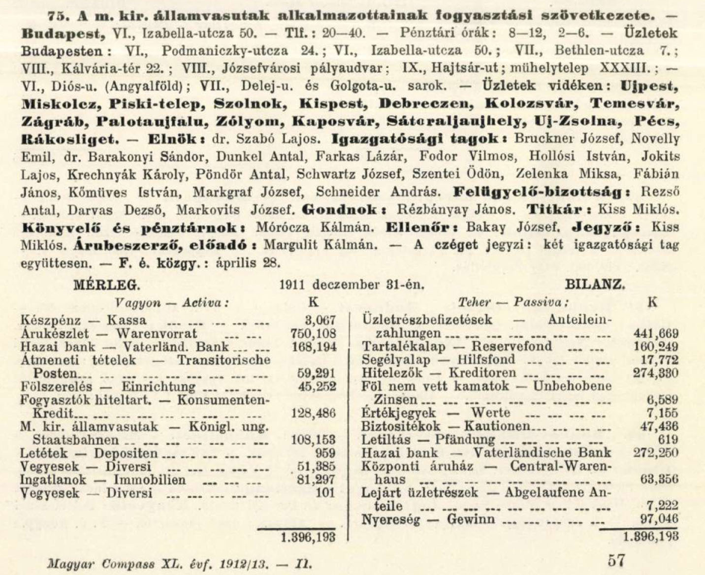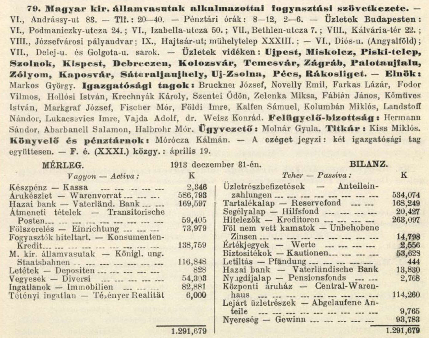 MÁV alkalmazottak Fogyasztási Szövetkezete 1912 MÁV alkalmazottak Fogyasztási Szövetkezete Forrás: Magyar Compass 1912 1914 Forrás: Magyar Compass 1914
