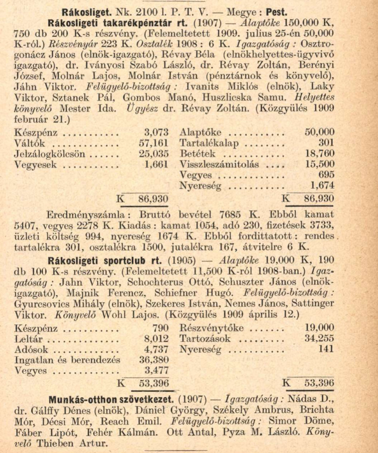 Forrás: Kormos Alfréd (szerk.): Pénzügyi Compass 2. kötet, 1909-1910 (Budapest, 1910)