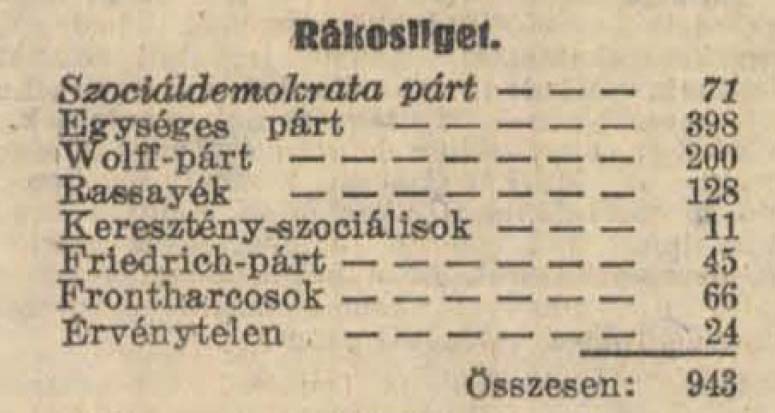 Meghiúsult munkapárti szervezkedés. A közeli Rákosligeten, amely a gödöllői kerülethez tartozik, Szegedi Albert nyugalmazott rákoskeresztúri főjegyző meg akarta alakítani a munkapárt helyi szervezetét. Az értekezleten, amelyet a párt megalakítása céljából összehívott, mindössze négyen jelentek meg, dacára annak, hogy a talaj igen alkalmasnak látszott, mert Rákosligeten igen sok állami tisztviselő, tanár, bíró, posta- és vasúti hivatalnok lakik. Rákosligeten most jól mulatnak a kudarccal végződött munkapárti erőlködésen.