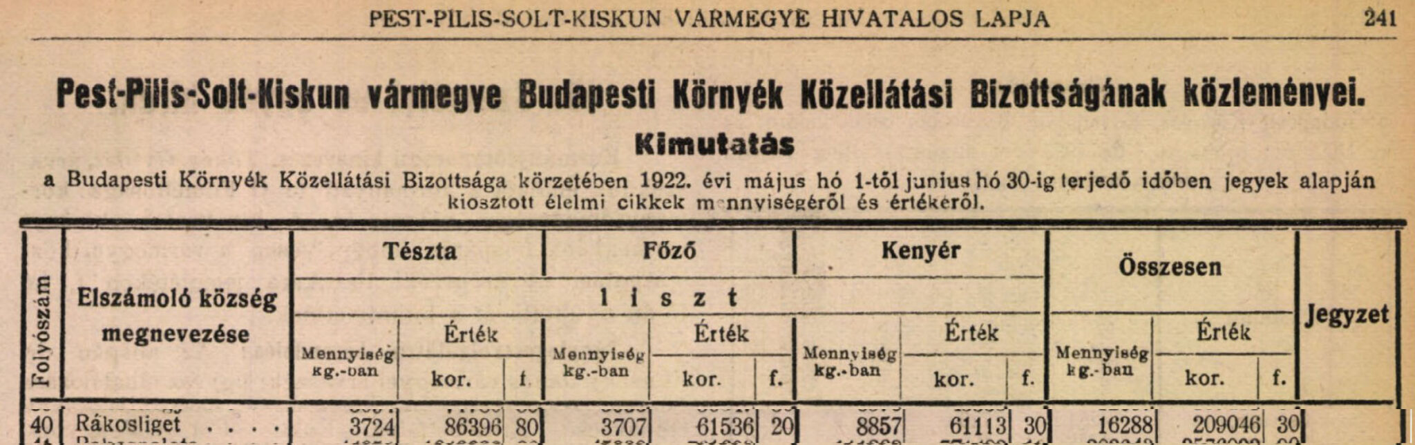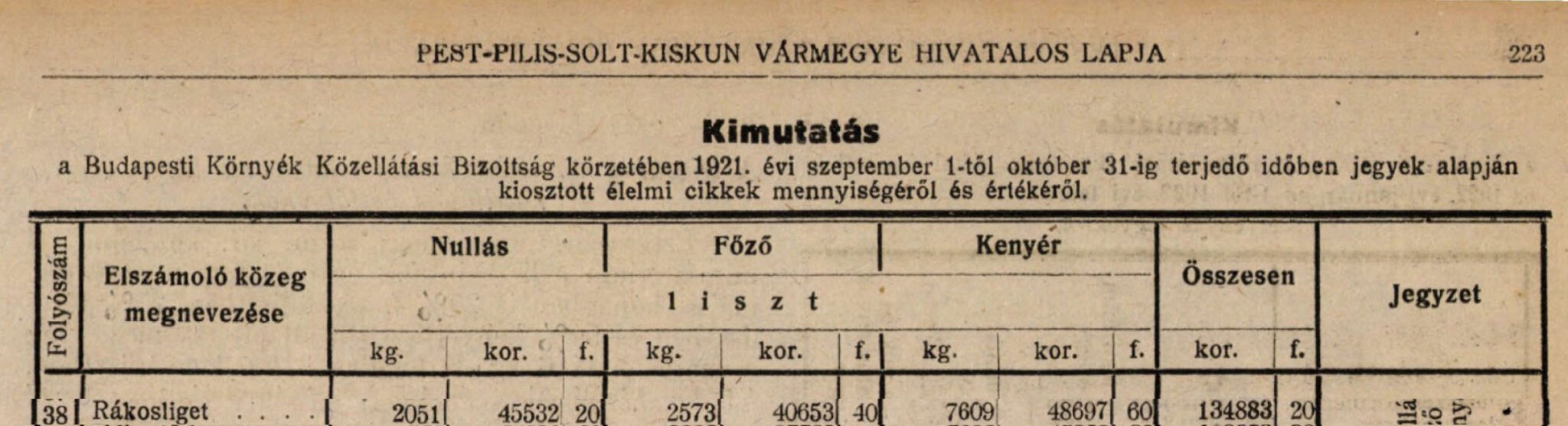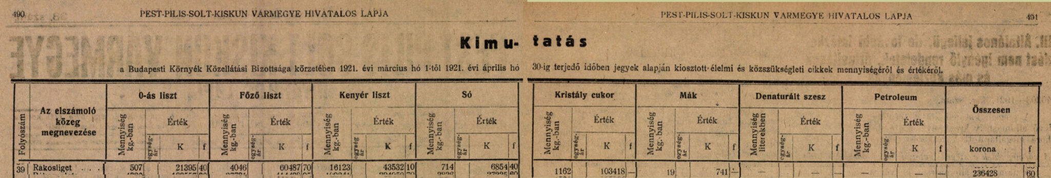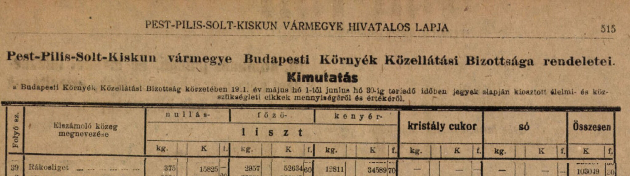 Tudomásvétel végett közlöm, …hogy a kereskedelemügyi miniszter ur 10430/908. számú rendeletével megengedte, hogy Rákosliget községben minden hét hétfő és csütörtöki napjain állatfelhajtás és helypénzszedés nélküli hetivásár tartassák.
