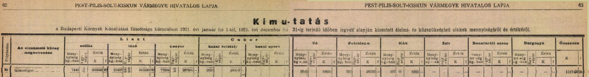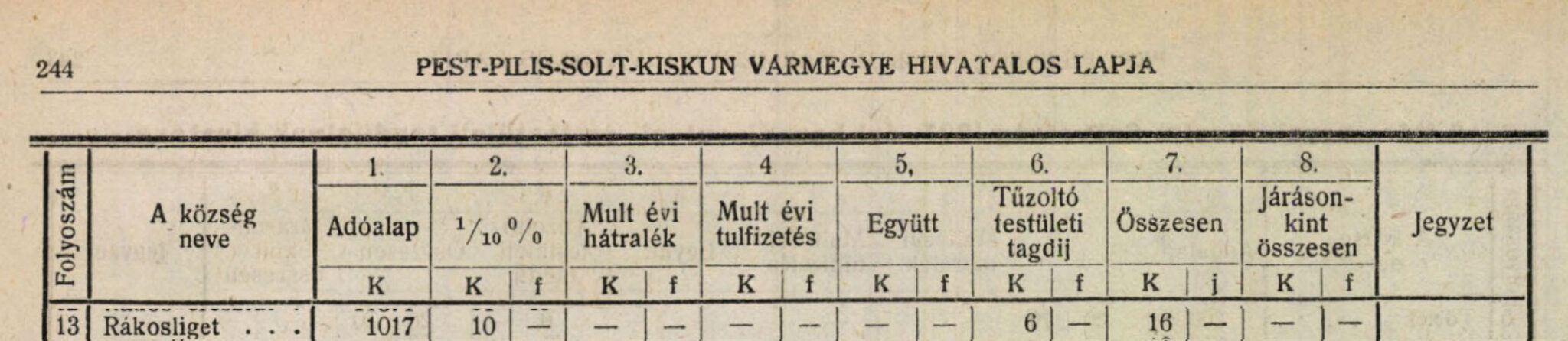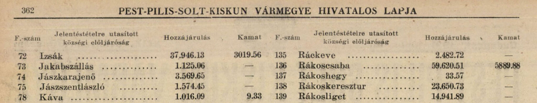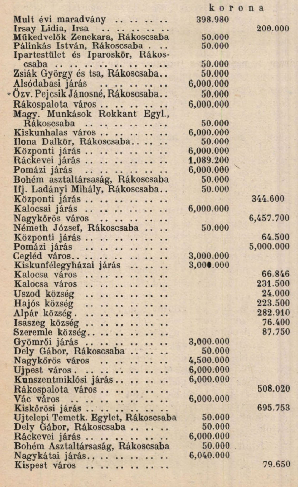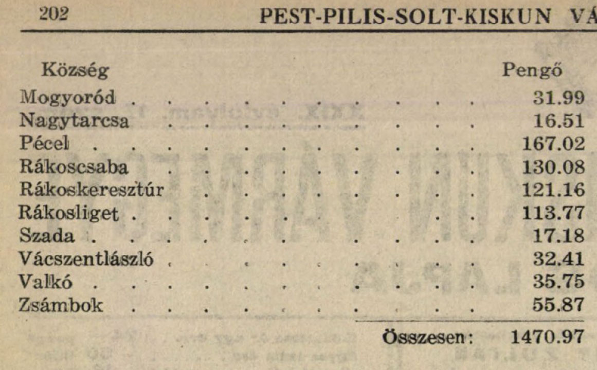 … Rákosliget község tartozása . . . . 45 Pengő 87 fillér …
