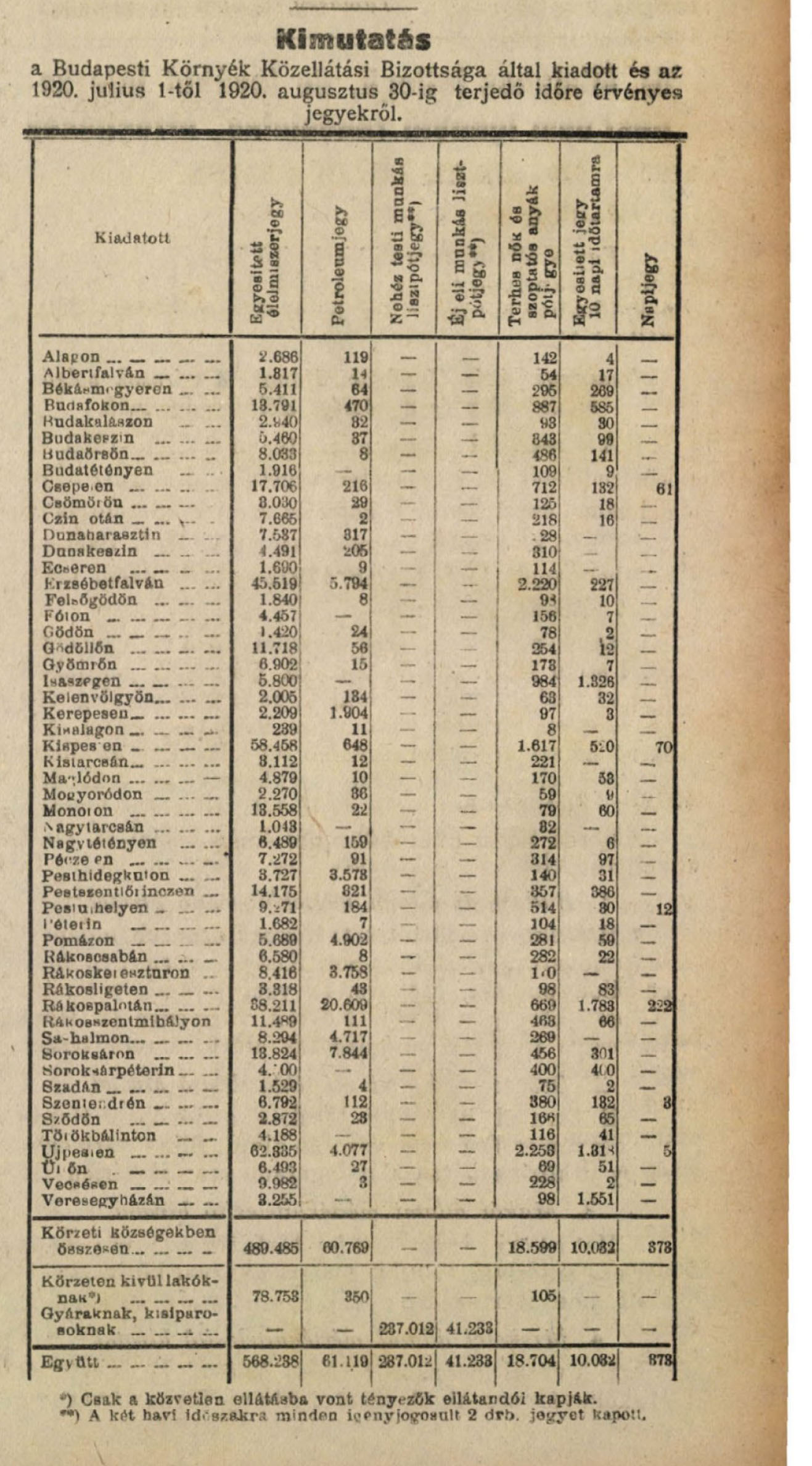 Az 1908 évi törvényhatósági útadó járások szerinti községenként csoportosítását azzal az utasítással közlöm, hogy a járási tőszolgabirák, (rt. városok polgármesterei) a községek (rt. városok) terhére megállapított útadót vegyék nyilvántartásba s azoknak beszedését s az illetékes m. kir. adóhivatalokhoz leendő beszállítását és a behajtását ellenőrizzék.