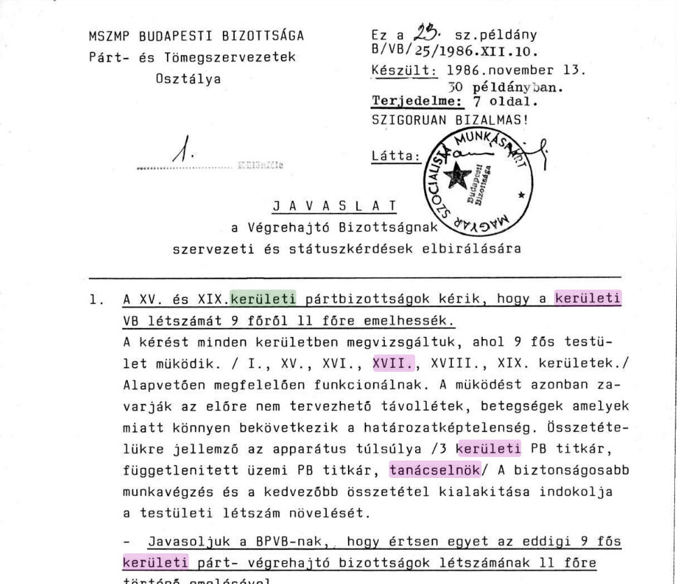 2 klubjában – 2 helyiségben /87 m / van elhelyezve egy 97 fős pártalapszervezet. A taggyűlések megtartására a közös használatú nagyteremben megfelelő lehetőség van. Elhelyezésükön jelenleg nem indokolt változtatni. Forrás: MSZMP Budapesti Végrehajtó Bizottságának ülései (HU BFL – XXXV.1.a.4.) 1984.10.17. 697. öe.1984_VB 697/11