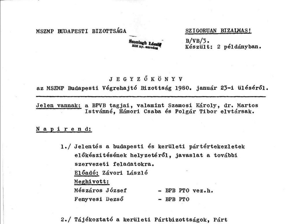 MSZMP Budapesti Végrehajtó Bizottságának ülései 1959.04.06.