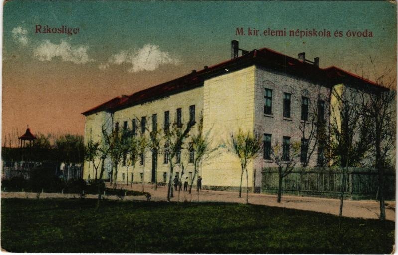 M. kir. állami elemi népiskola és óvoda. Üdvözlet Rákosligetről. Kiadta: Garai-féle papírkereskedés, Rákosliget postatiszta 1905. előtt Erdős Renée Ház, fotómásolat Eredeti: Zempléni Múzeum, Szerencs