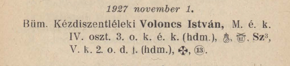 SZABÓ JÓZSEF tart. c. szakaszvezetőnek (1911. Rákosliget — Holl Anna) Forrás: Honvédségi Közlöny 1941. december 2.