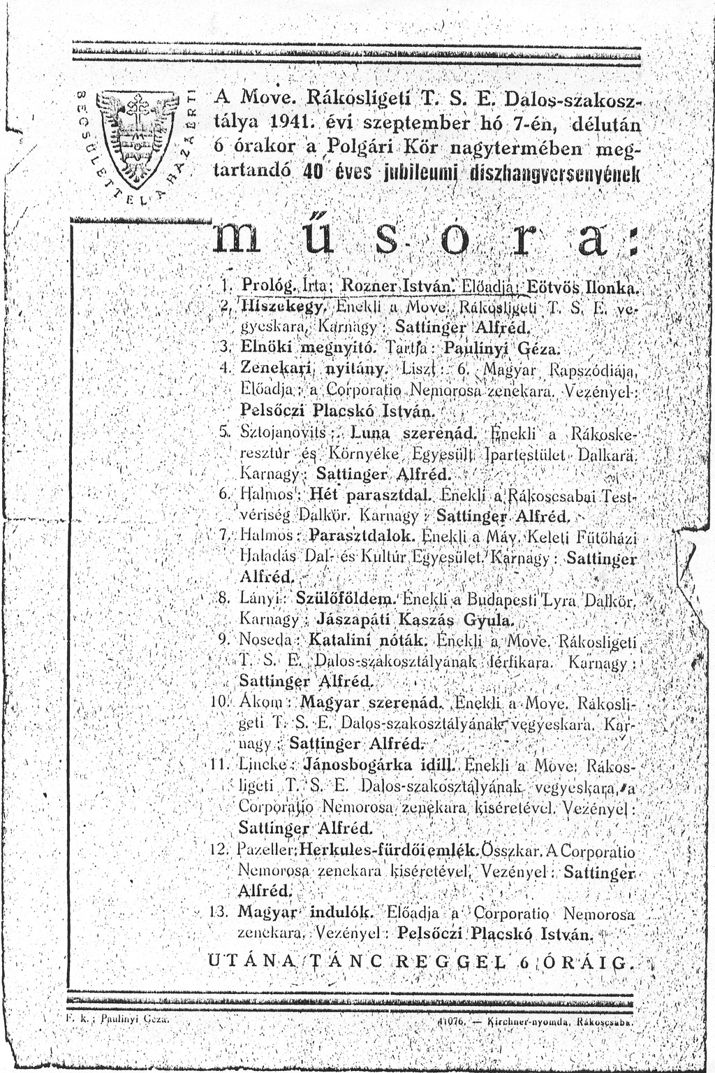 Az Alföldi Híradó 1909. augusztus 17.-i számában számol be a Rákosligeti Dal- és Zenekör fellépéséről:
