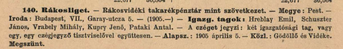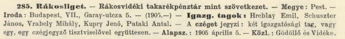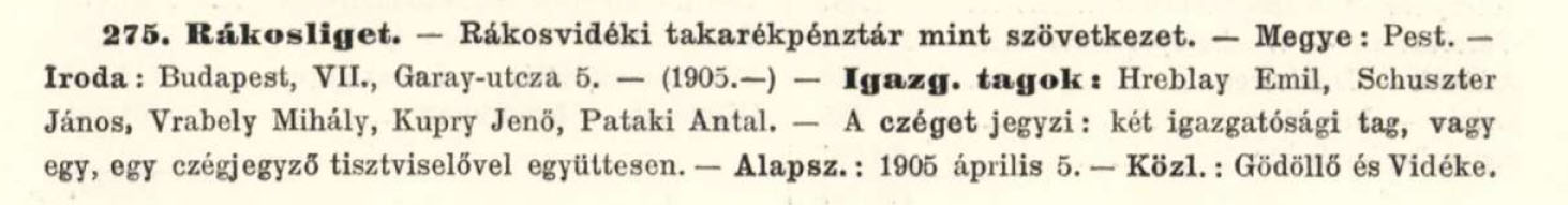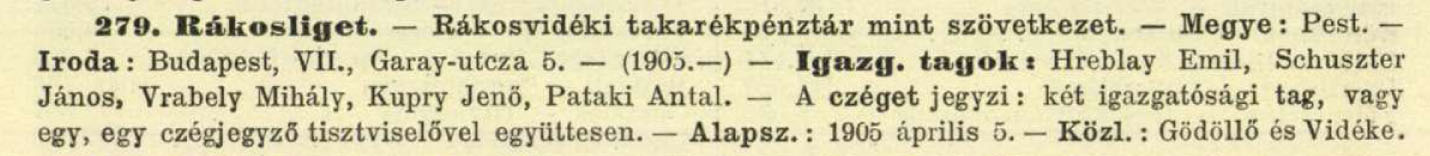 Rákosvidéki Takarékpénztár mint Szövetkezet, Rákosliget. 1906.