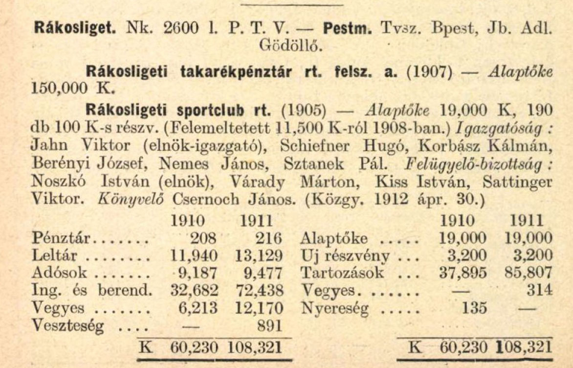 Rákosvidéki takarékpénztár Rt. 1907 Forrás: Mihók-féle Magyar Compass 352. (1907) 944. oldal