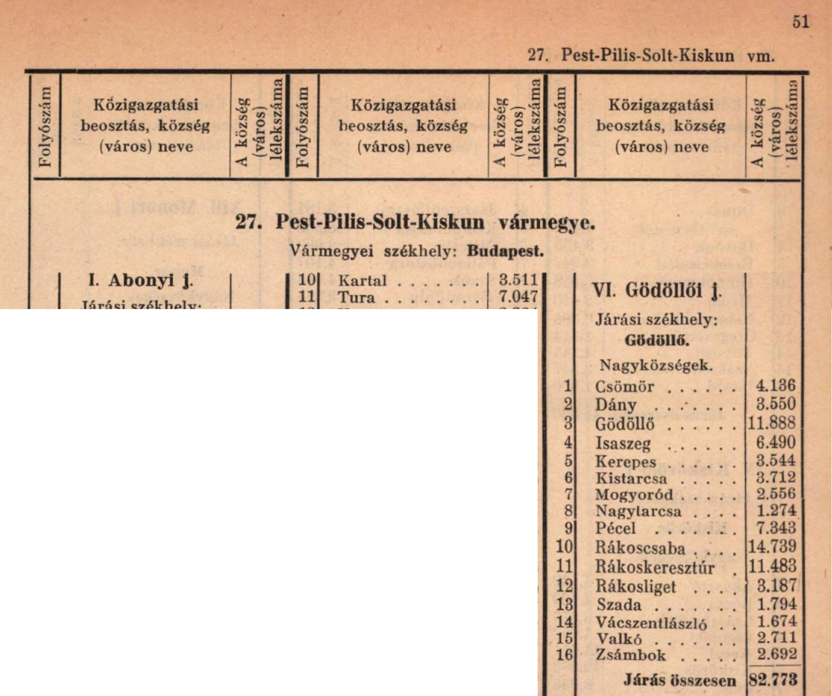 Forrás: Tanulmányok Budapest Múltjából 30. (2002) – Az ötven éves Nagy-Budapest – előzmények és megvalósulás. Kalmár Ella A statisztikai Nagy-Budapest 289-336 old.