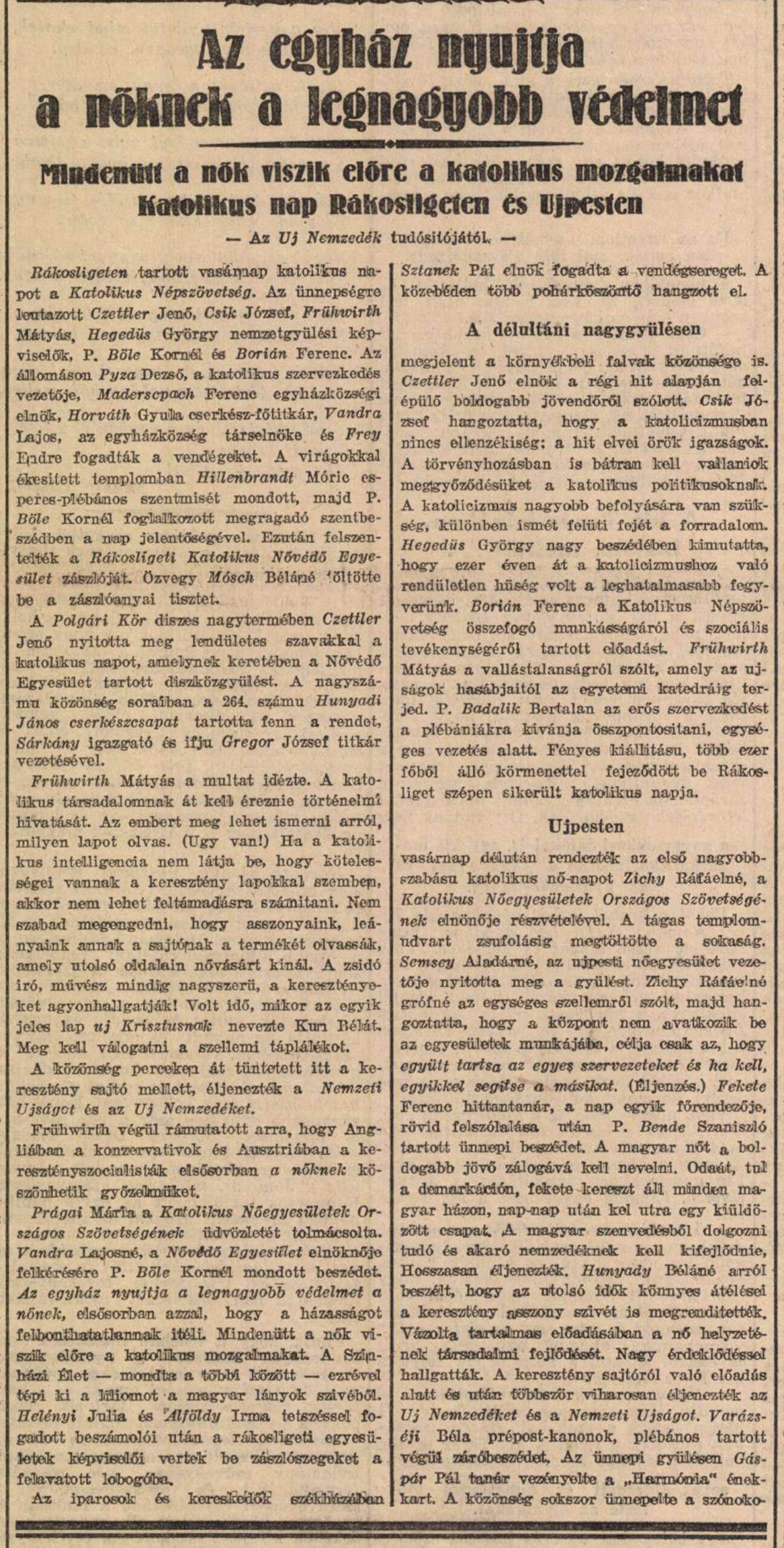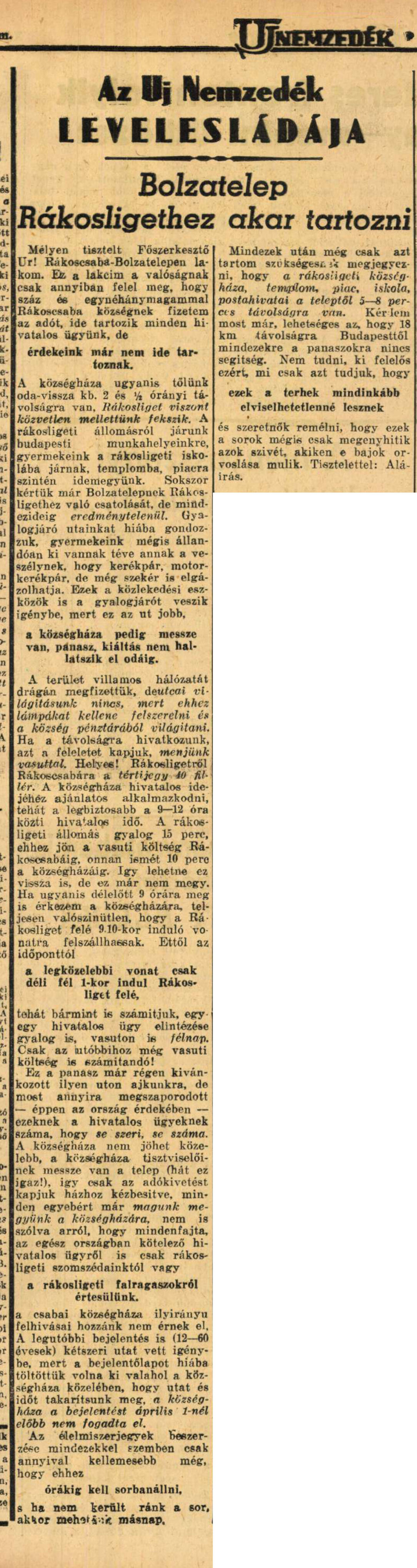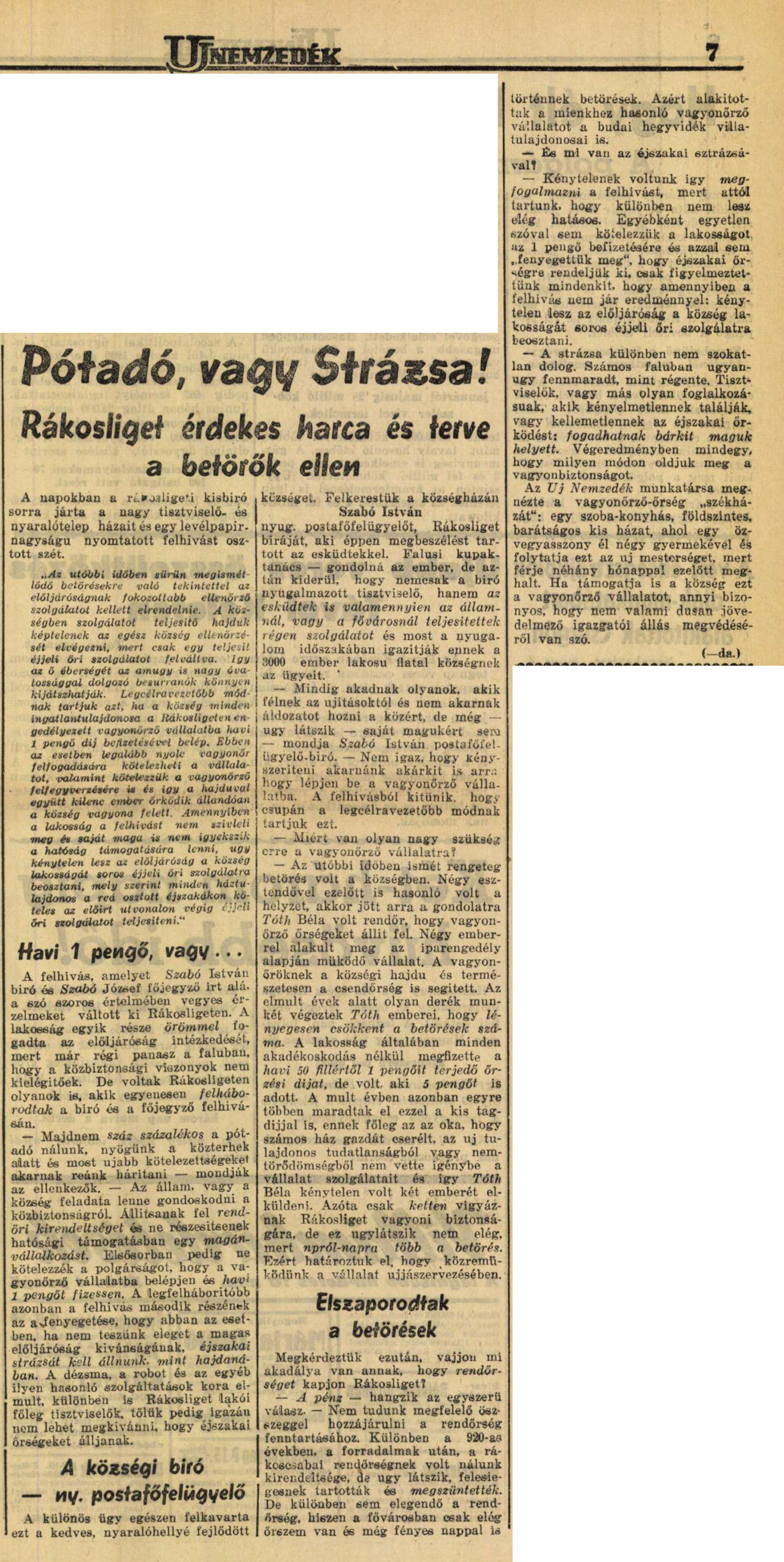 ÚJ NEMZEDÉK 1925 1925. 06. 03. 5. oldal 1925. 06. 16. 7. oldal Katolikus nap 1937 1937. 07. 09. 7. oldal Betörések Rákosligeten 1940 1940. 05. 29. Újtelep Rákosligethez csatolása. VISSZA A SAJTÓ LAPRA