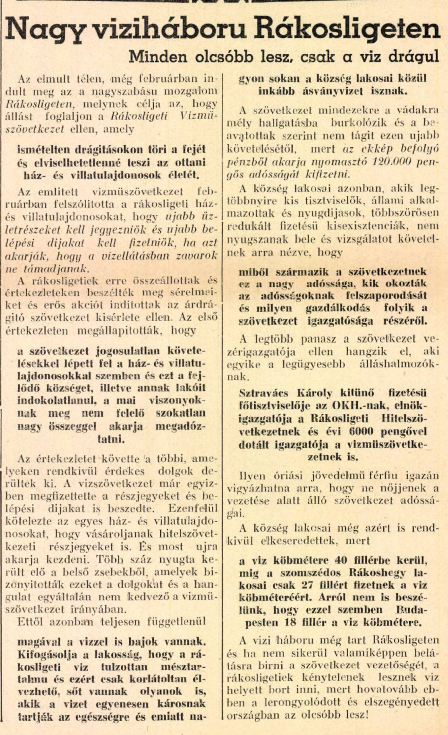 A budapesti agglomeráció pontos kút-, illetve ivóvízkataszterének hiányában is megállapíthatjuk, hogy az 1930-ban már 415.213 főnyinek bizonyult népességnek csak kisebb töredéke: 194.205 lélek van — hozzávetőleges számítás szerint — centrális vízmű útján ivóvízzel ellátva. Az újpesti, wekerletelepi, albertfalvai, budafoki, rákoshegyi és rákosligeti vízművek tehát az agglomeráció népességének csak 45-7%-át részeltetik higiénikus ivóvíz szolgáltatásában. A legnagyobb aggodalommal kell látnunk, hogy még a nagyobb lélekszámú megyei városok között is akad egy (Rákospalota), amelyiknek centrális vízellátása nincsen.